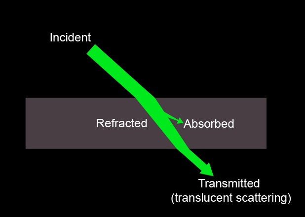This causes the light to bend into the material.