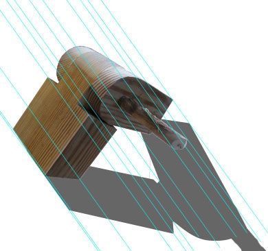 With this source of light, shadows are not enlarged with their distance from the object, as can be seen from the parallel construction lines.