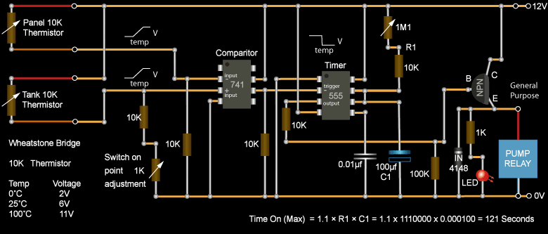 It has now been working for over six years with good results, after adjustment of the temperature switching point, with the 10k variable resistor. For an anti-freeze circuit, click here.